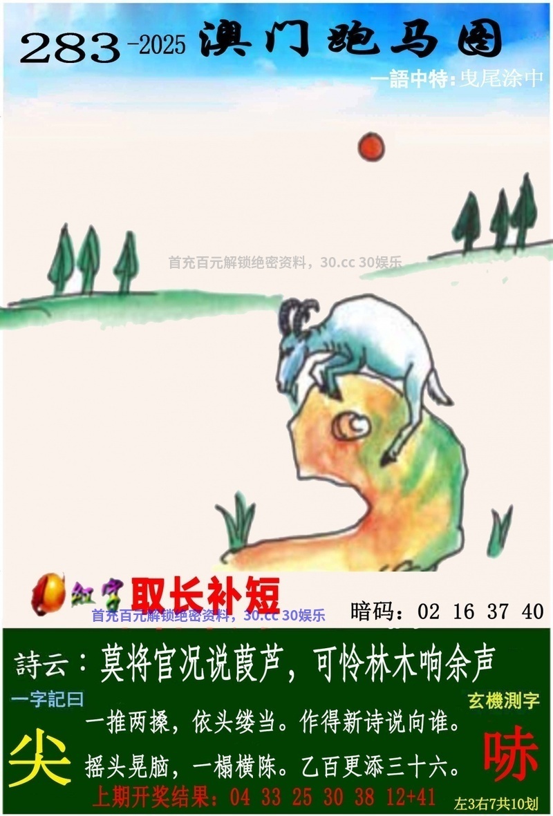 282期🍯 ✨猪马蛇羊龙鸡✨ 开奖:04-33-25-30-38-12-41 |